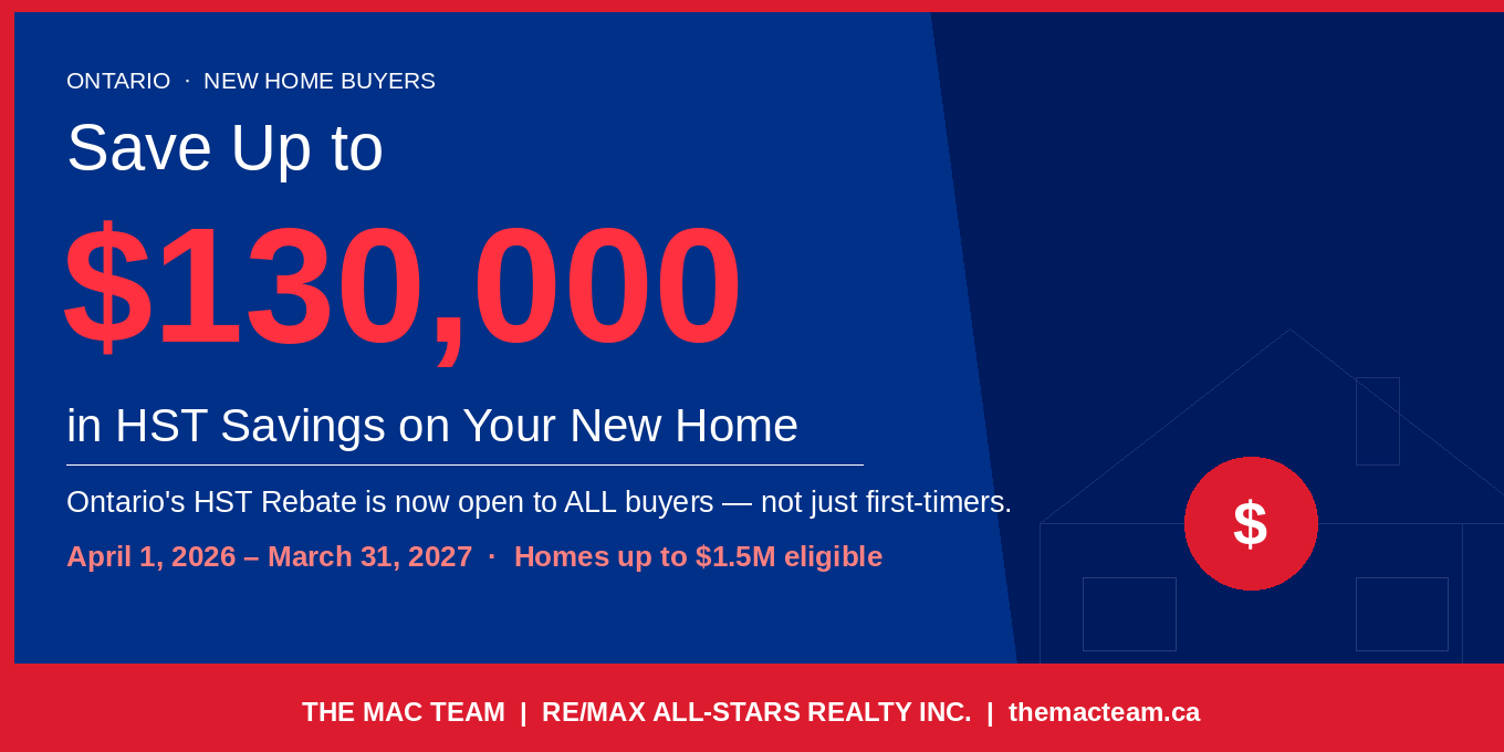 Ontario Expands HST Rebate on New Homes — Up to $130,000 in Savings for Buyers